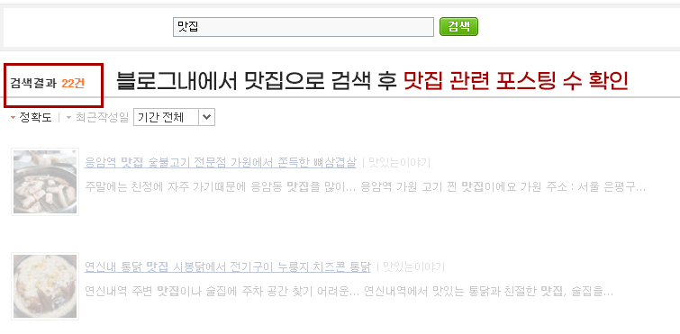 블로그 내에서 '맛집'이라는 키워드로 검색해 보세요.