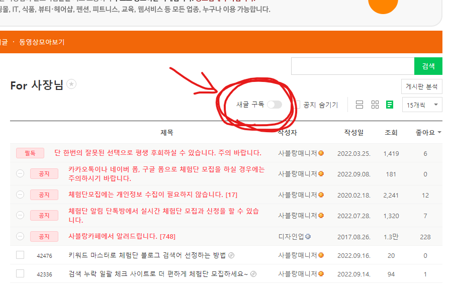 1. 아래처럼 원하는 게시판에 가셔서 새글 구독을 눌러주세요.