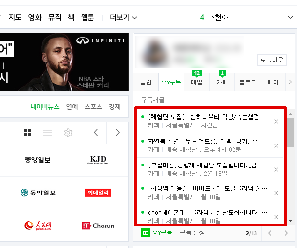 네이버 카페 PC 홈페이지