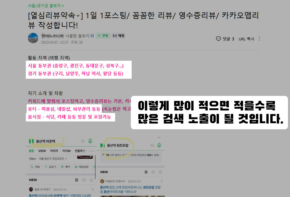 근데 마케팅 업체에서는 리뷰어들의 개인정보가 곧 업체의 자산으로 이어질 수도 있고