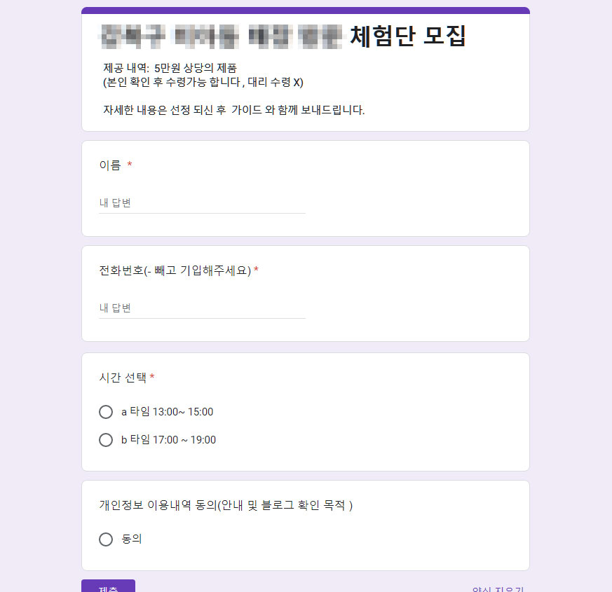 원래 체험단 심사에는 개인정보가 필요 없거든요.