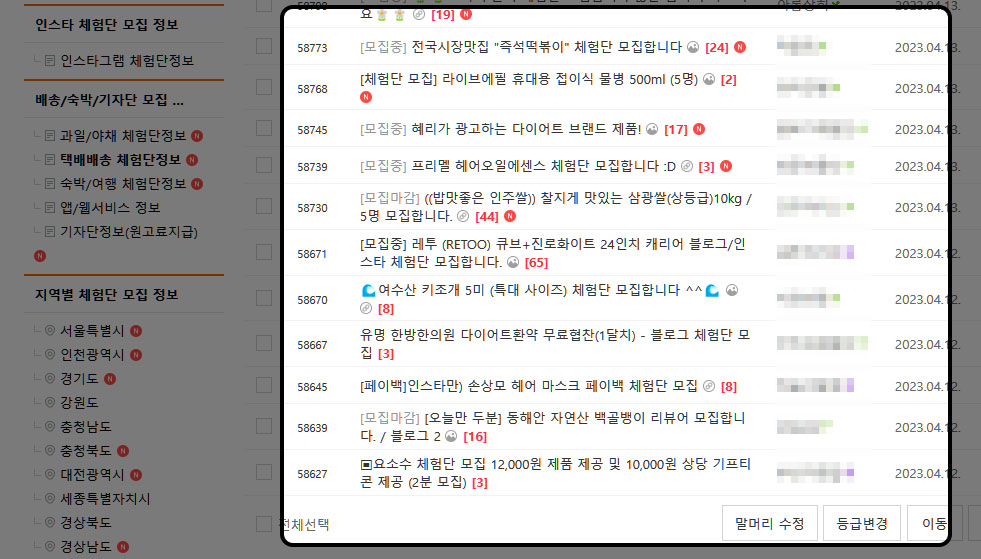 배송 체험단, 기자단 게시판에 올라온 모집글을 확인하시고