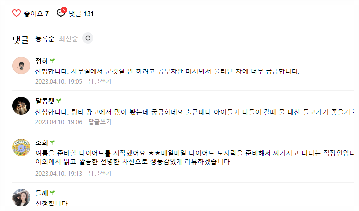 그냥 이렇게 신청 멘트만 남기시면 됩니다.