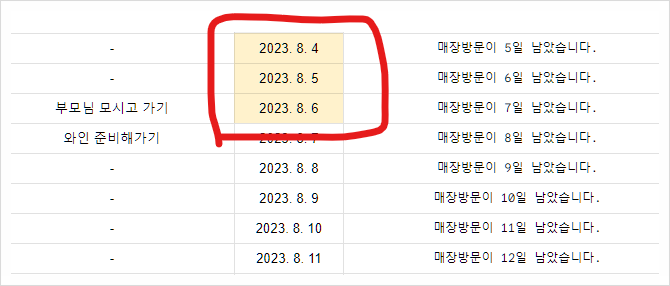 체험단 방문일이 일주일 남았을 경우 노란색으로 표시해 줍니다.