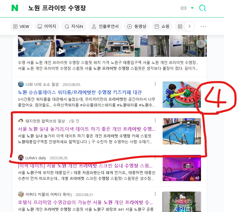 특히 단 8팀만에 "수영장" 키워드로 1등이라는