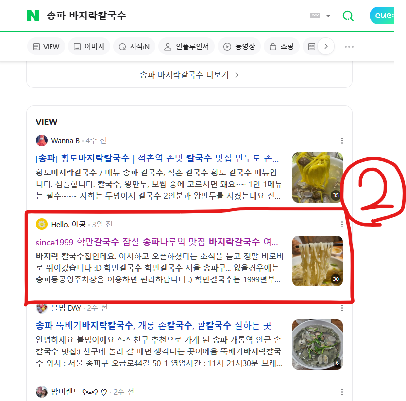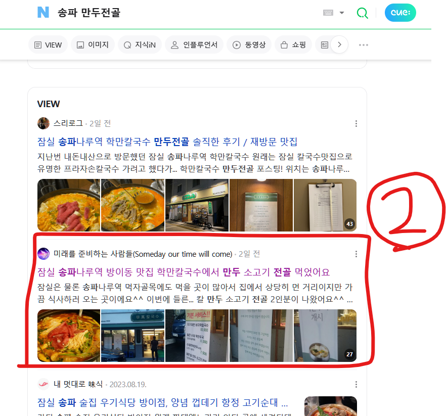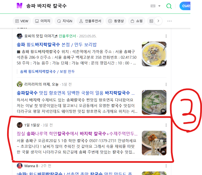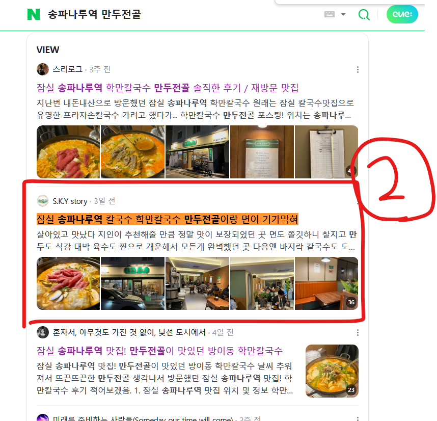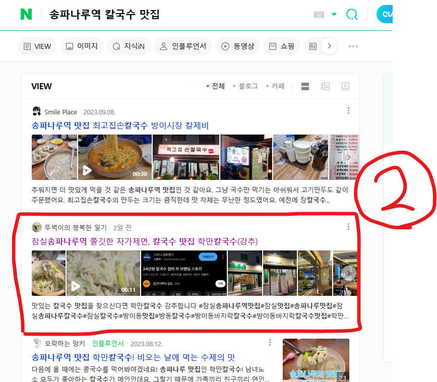 "잠실 만두전골" "송파 칼국수" 등의 인기 키워드로