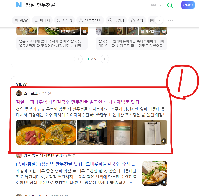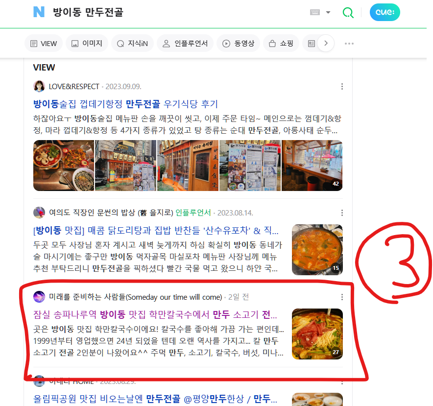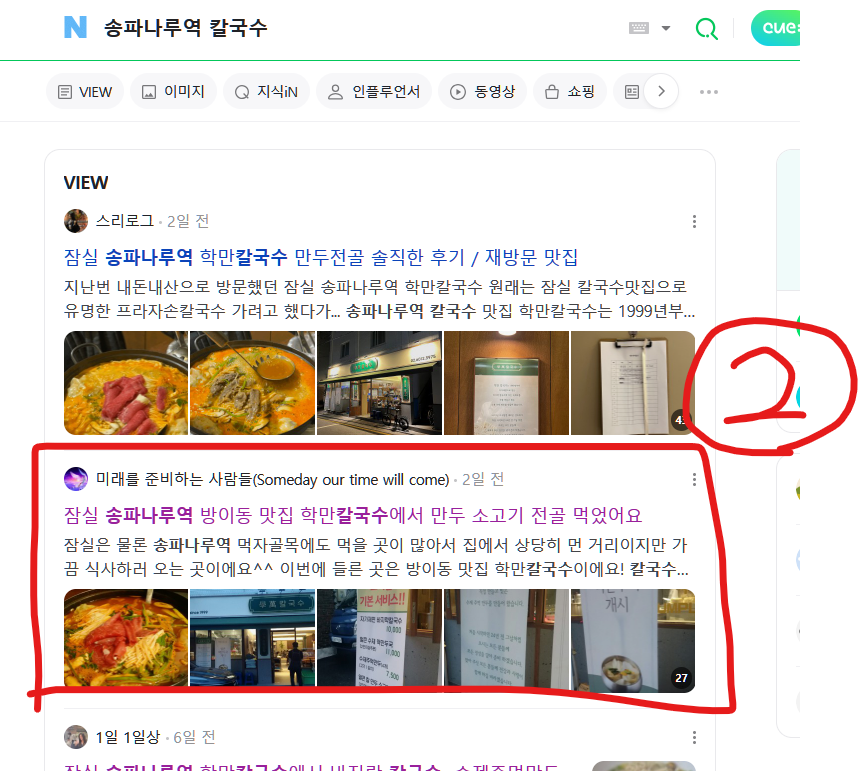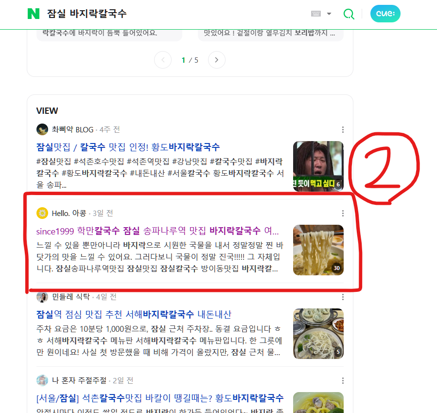 "잠실 만두전골" "송파 칼국수" 등의 인기 키워드로