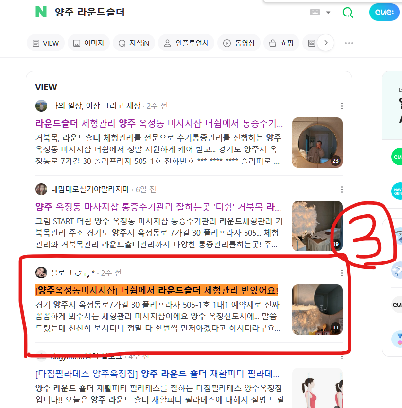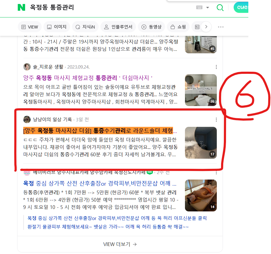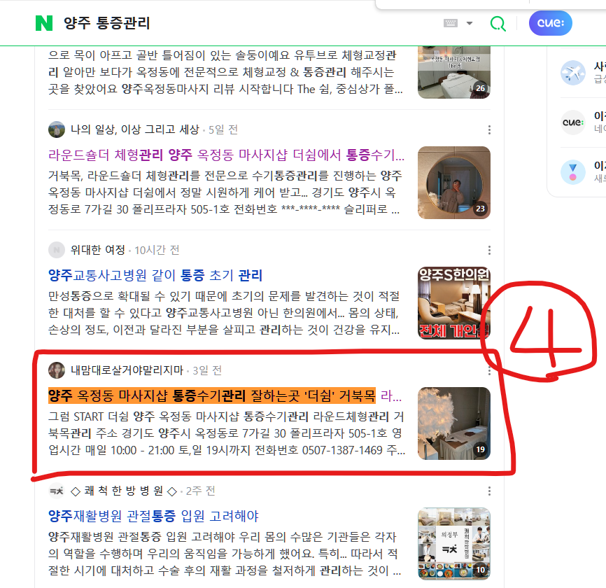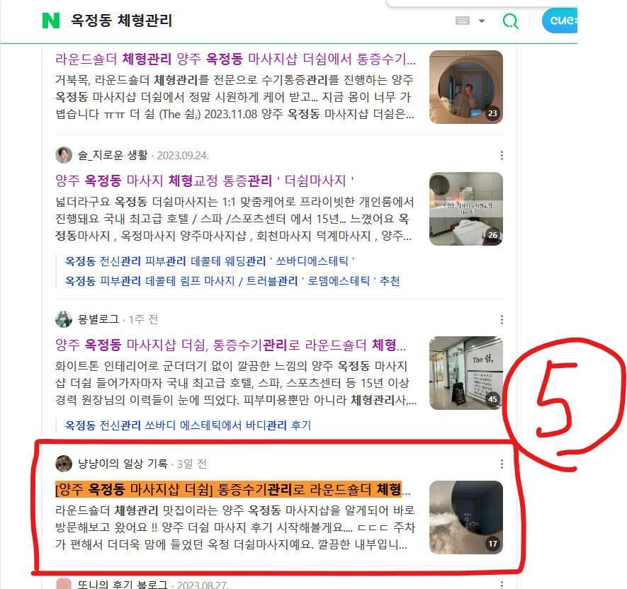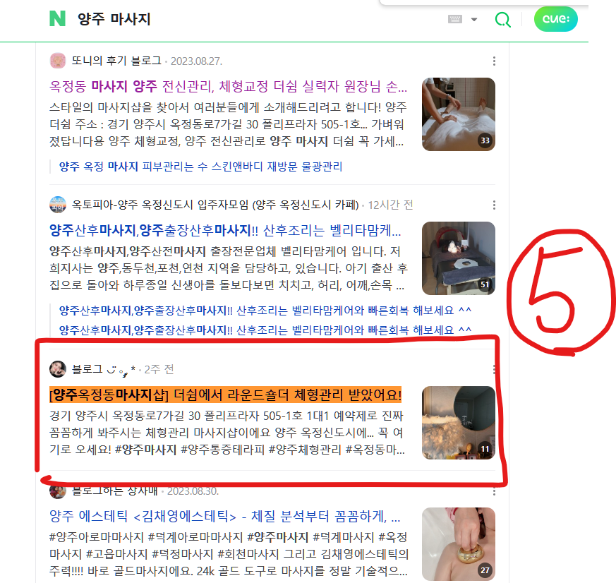 블로그 리뷰 10건 모두 상위 노출하였습니다.
