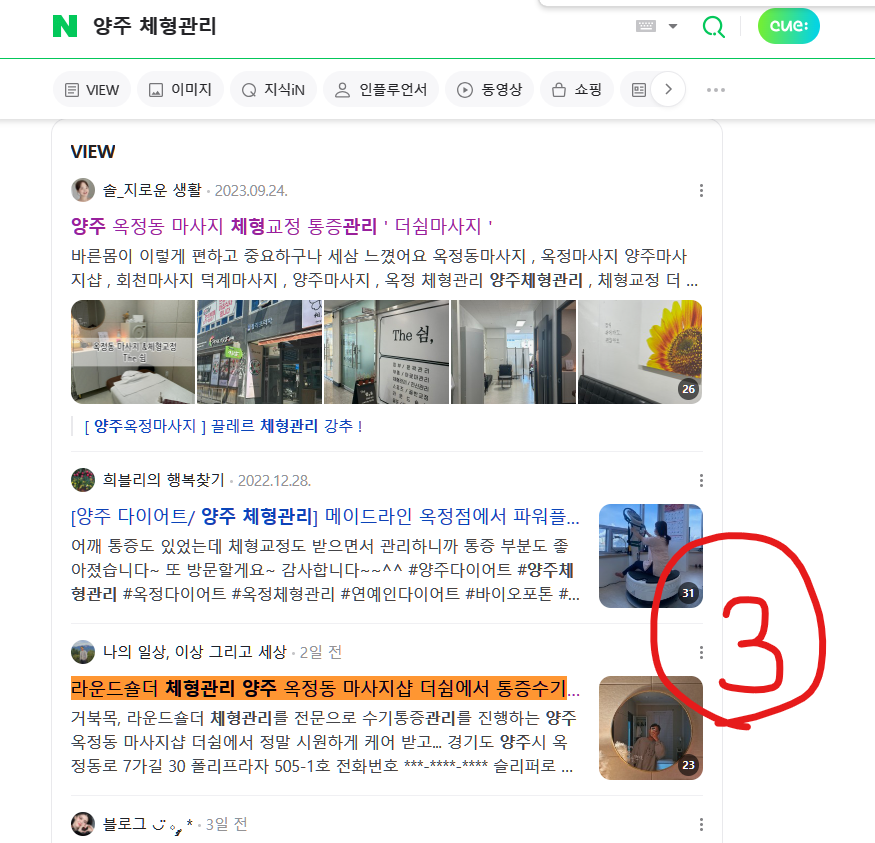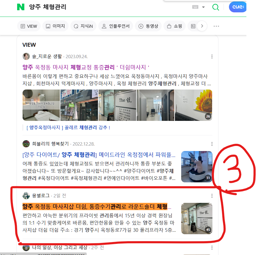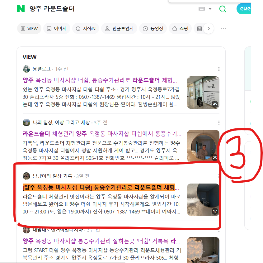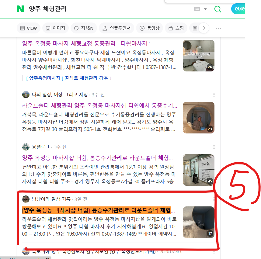블로그 리뷰 10건 모두 상위 노출하였습니다.