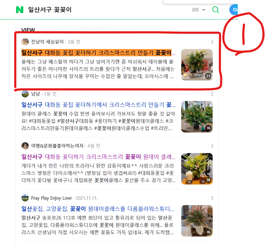 1등에 노출되는 기적적인 성과를 달성하였습니다.