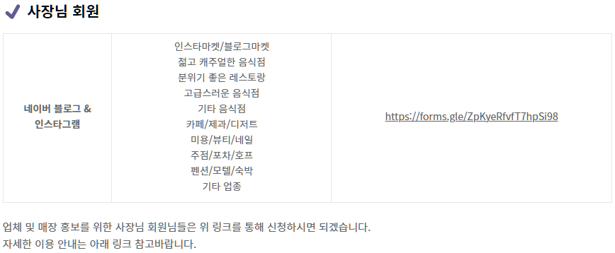 저희가 음식점, 카페, 뷰티샵, 펜션, 포차 등 다양한 업종의 사장님을 모아서